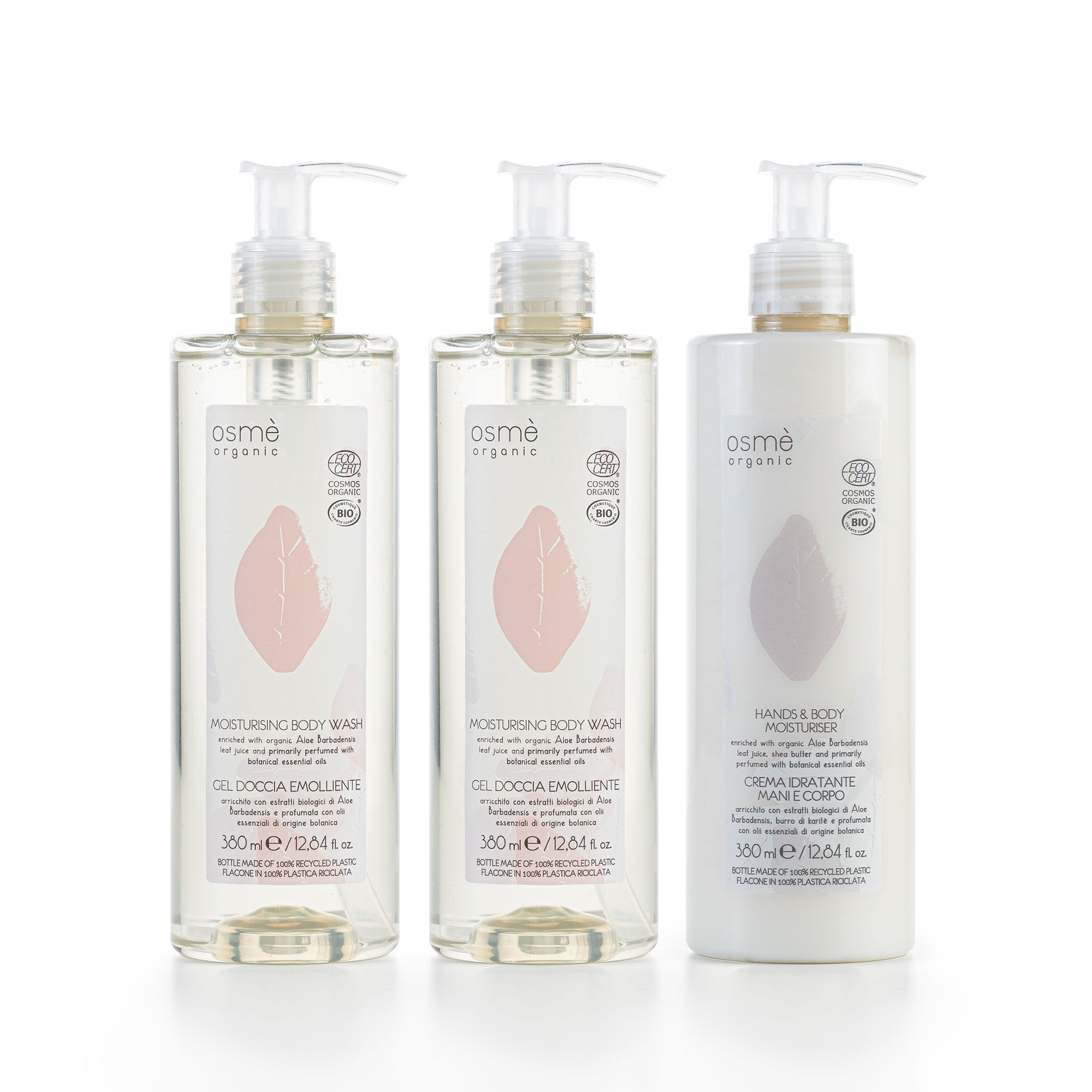 2× Osmè Gel Douche Veloutant Certifié Bio (380 ml) + 1× Crème Hydratante Pour Le Corps Et Les Mains Certifiée Bio (380 ml)
