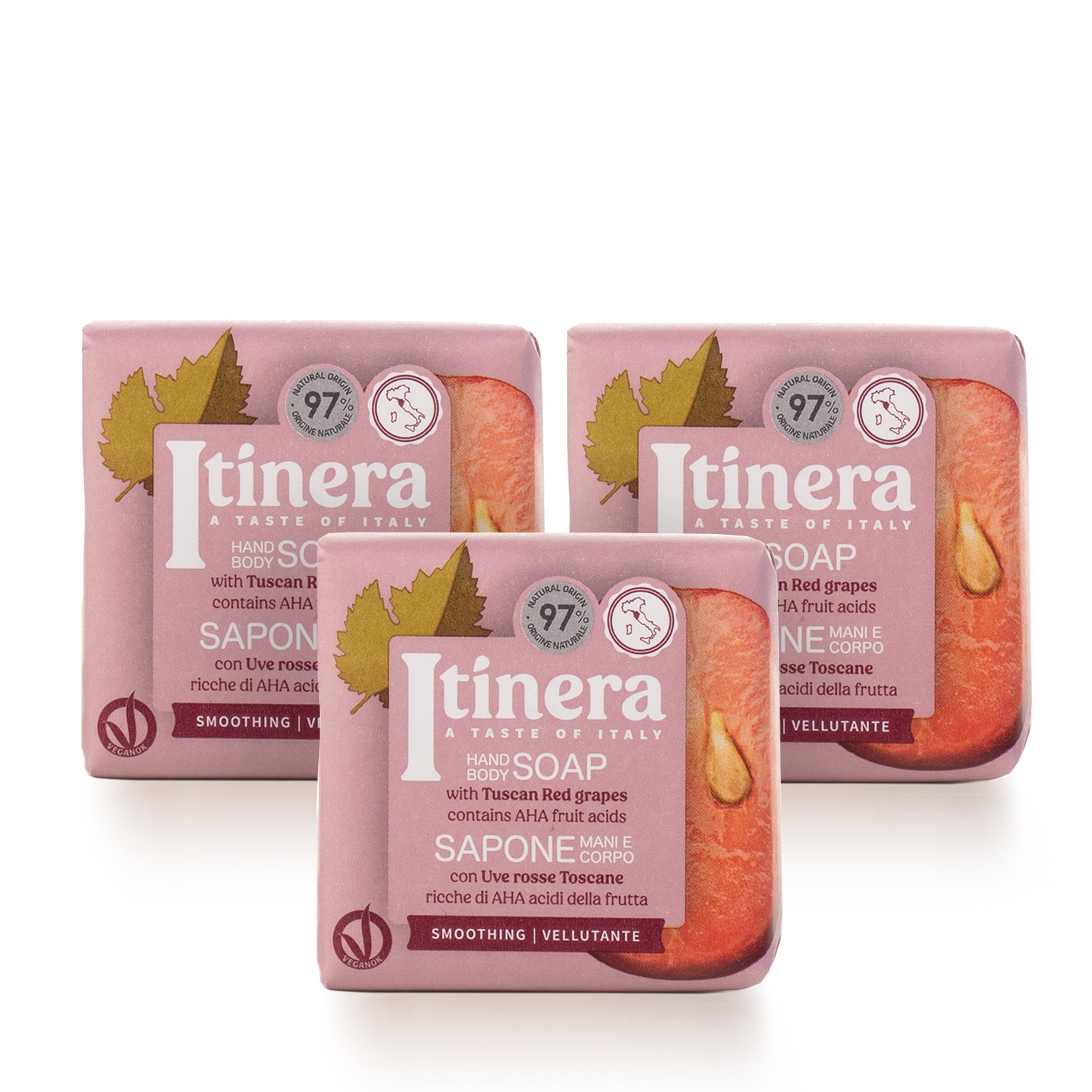 ✔ 3 x Smoothing Hand Body Soap with tuscan red grapes (100 g)